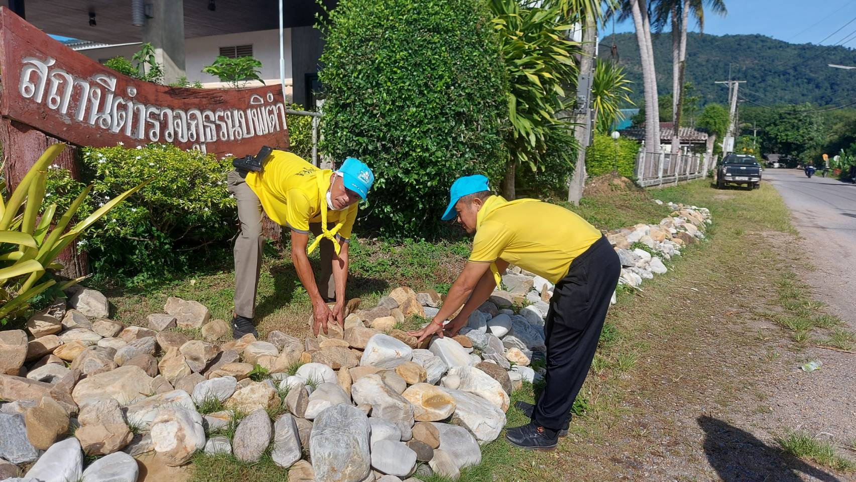 กิจกรรมจิตอาสา ข้าราชการตำรวจ สภ.นบพิตำ 28 มิถุนายน 2566 โดย nopphitam_ask / ข่าวประชาสัมพันธ์,ข่าวกิจกรรม วันที่ 28 มิถุนายน 2566 เวลา 8.30 น. ภายใต้การนำของ พ.ต.อ.อภิชาติ คชเวช ผกก.สภ.นบพิตำ, พ.ต.ต.สิโรตม์ นิลวงศ์ สวป.สภ.นบพิตำ พร้อมด้วยข้าราชการตำรวจ สภ.นบพิตำ ร่วมกันทำกิจกรรมจิตอาสา โดยนำหินมาตกแต่งหน้าอาคารสถานที่ทำการ สภ.นบพิตำ เพื่อให้เกิดความสวยงาม Facebook iconFacebookTwitter iconTwitterLINE iconLine