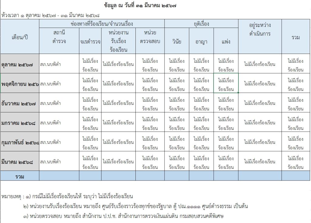 ข้อมูลเชิงสถิติเรื่องร้องเรียนการทุจริต