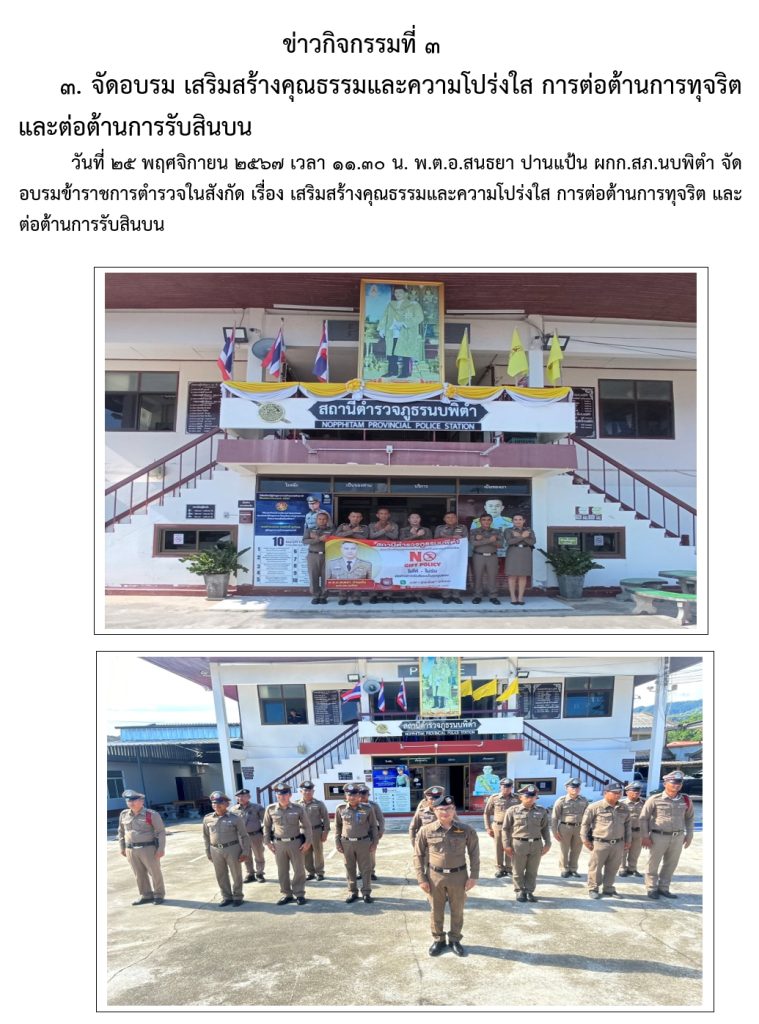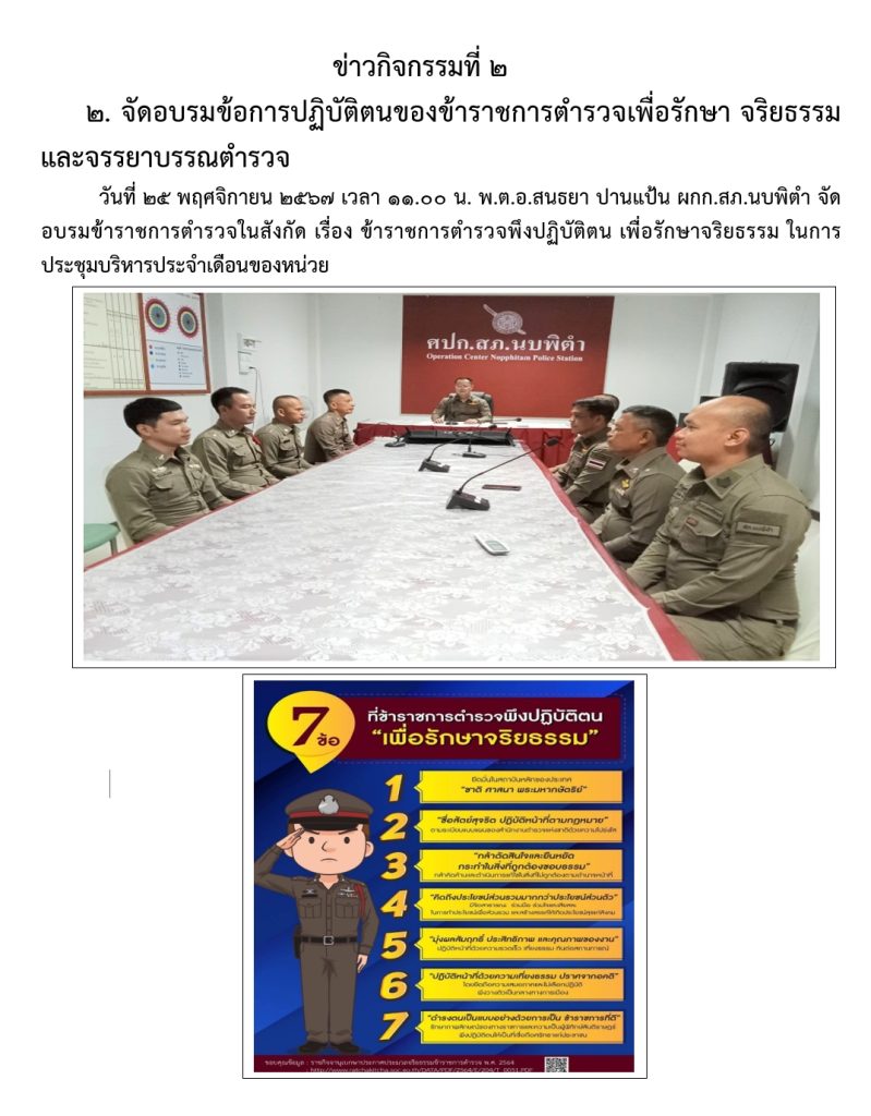 กิจกรรมที่ 2 จัดอบรมข้อการปฏิบัติตนของข้าราชการตำรวจเพื่อรักษา จริยธรรม และจรรยาบรรณตำรวจ